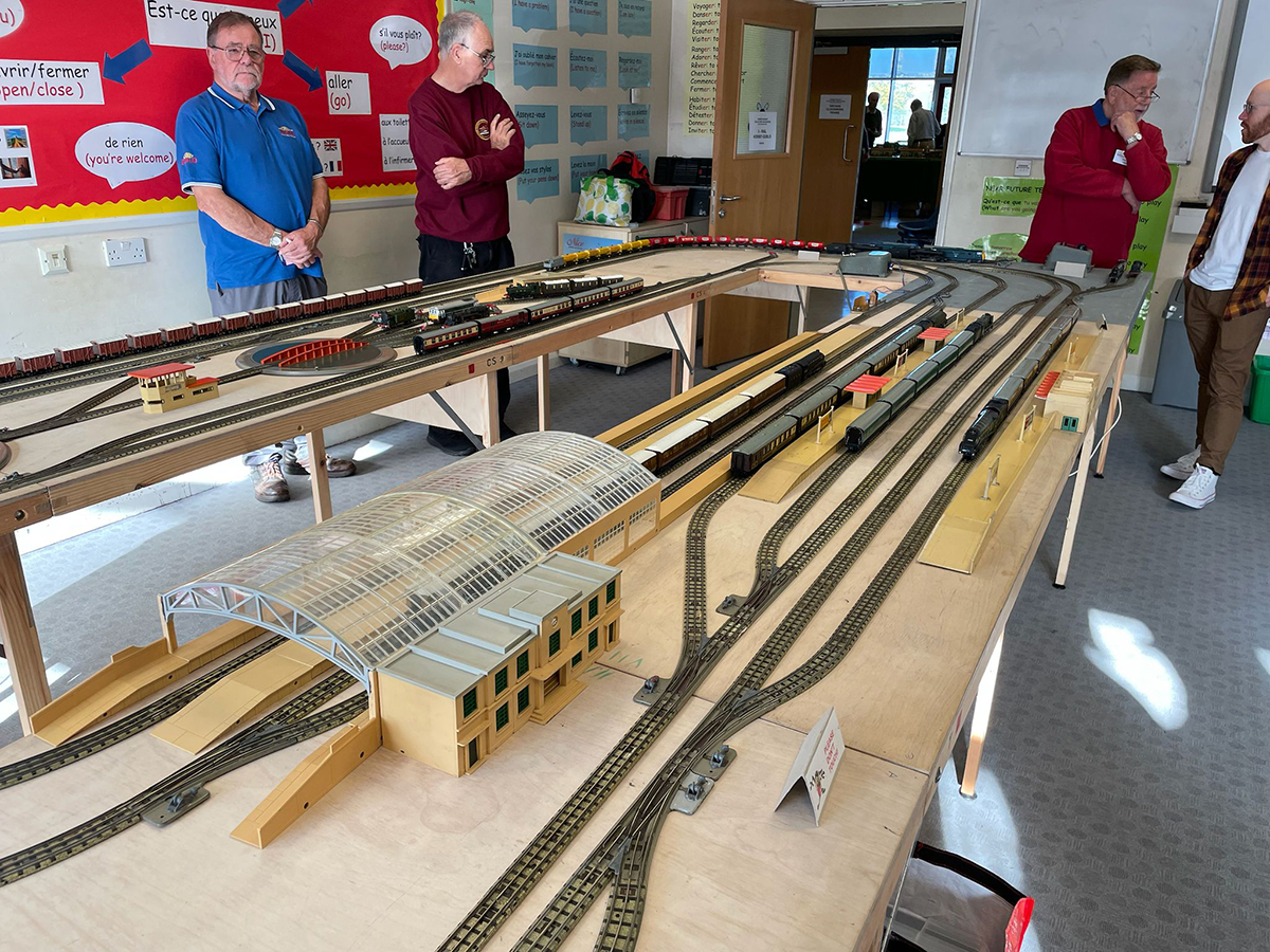 Two other guest displays must be mentioned. Martin Kilford is a regular at our shows and this year did not disappoint with his two rail layout decked out with French Hornby (Acho) buildings and rolling stock. Roger Winterbourne also made a return visit with his Triang display, showing how in the early 50's they improved their offerings to avoid banana shaped roofs etc. Being based in Margate, they introduced a Southern suburban passenger train early in their programme.