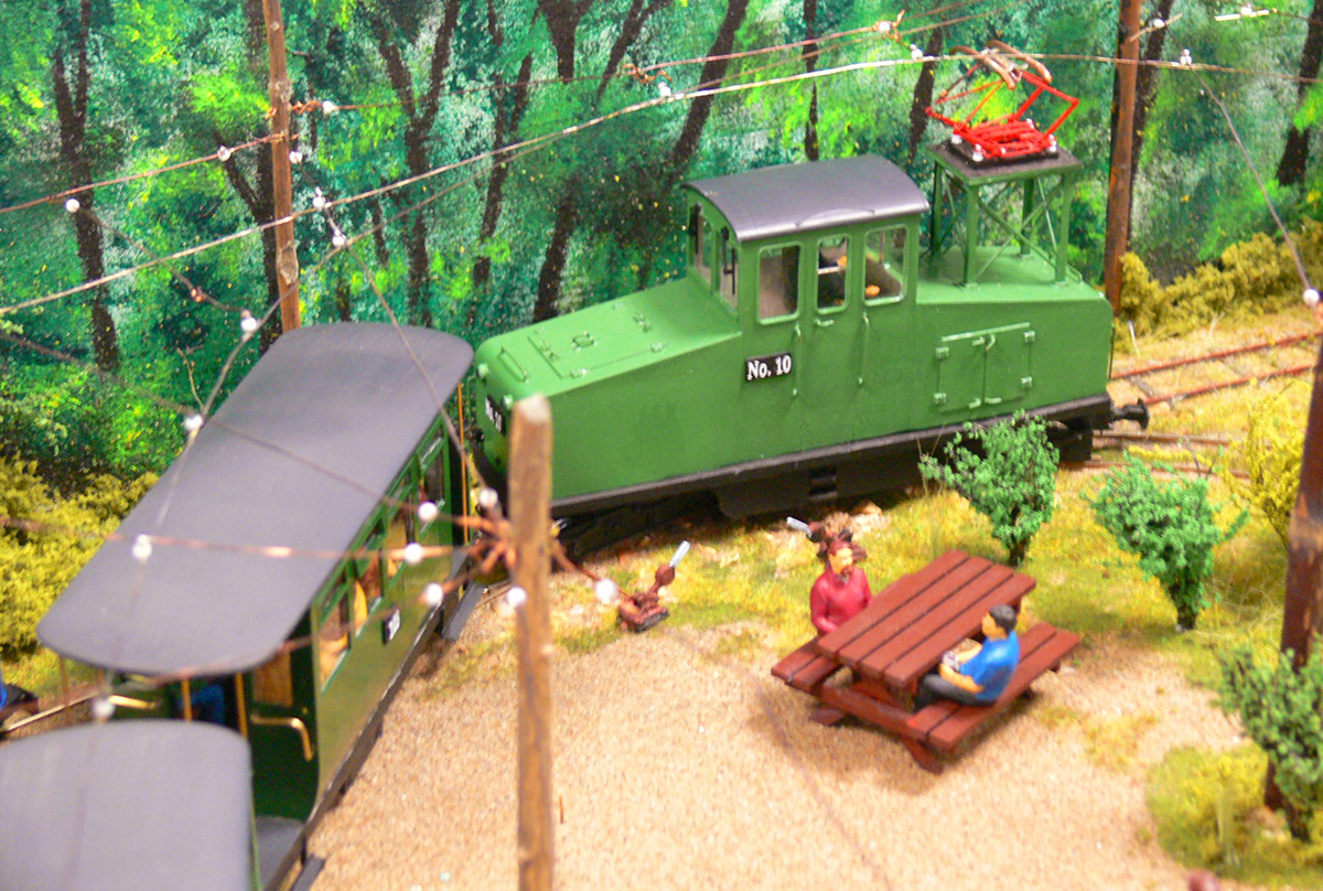 Our chairman Steve Sands bought along his module Dublo 3 rail, which seems to get bigger each year. Squeezed in was the Backan Ford Tramway operated by two youngsters using digital hand controllers, with dad in attendance to sort out things when the trams went the wrong way. This layout was very realistic especially with the overhead catenary.