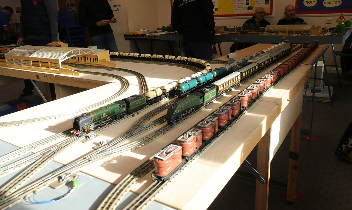 The final room had the club’s 3 rail layout alongside Martin Kilford’s British 2 rail layout. |
