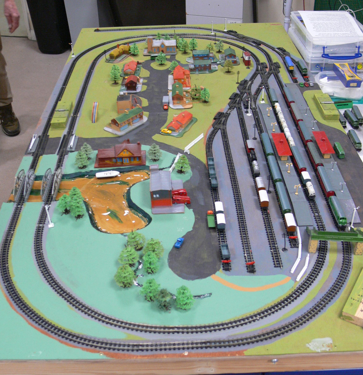 In the corner was the compact Dublo 3 rail layout Woodtown by the Rev Brian Woods.