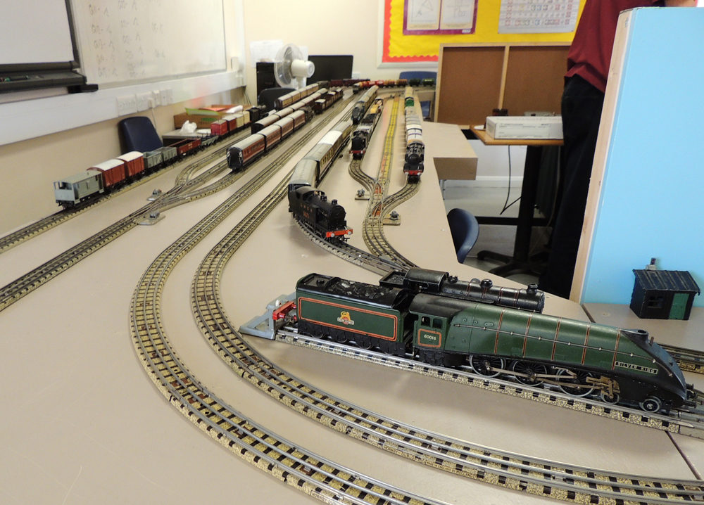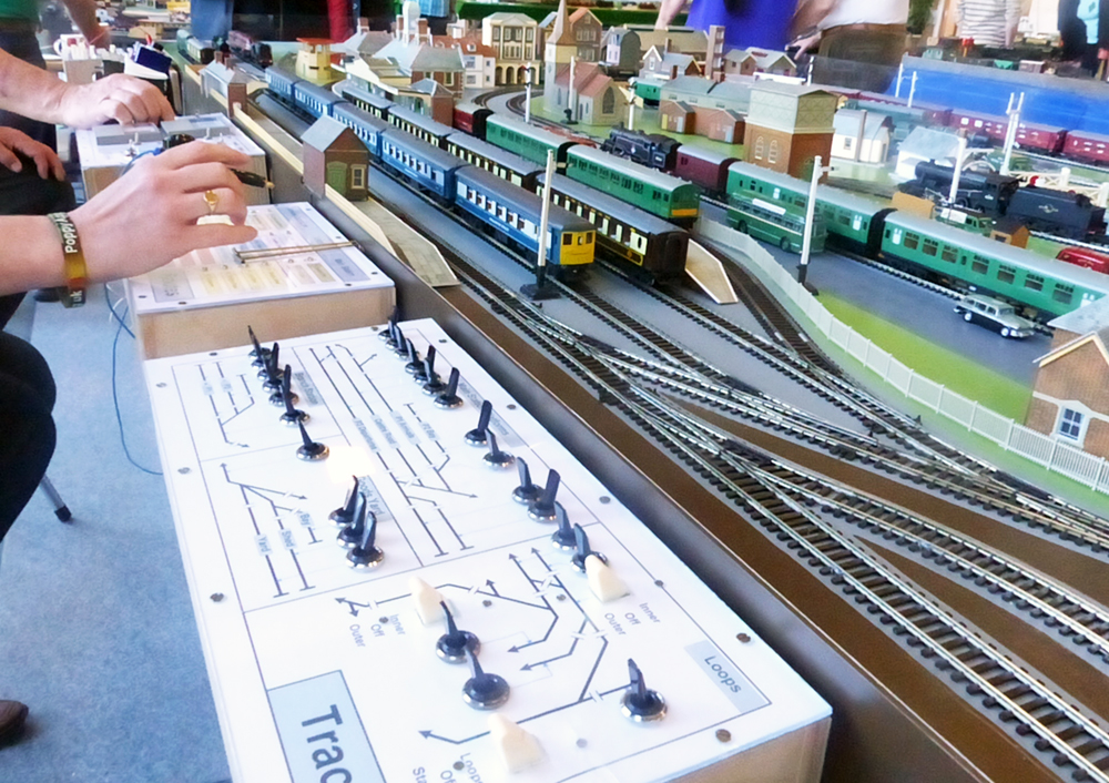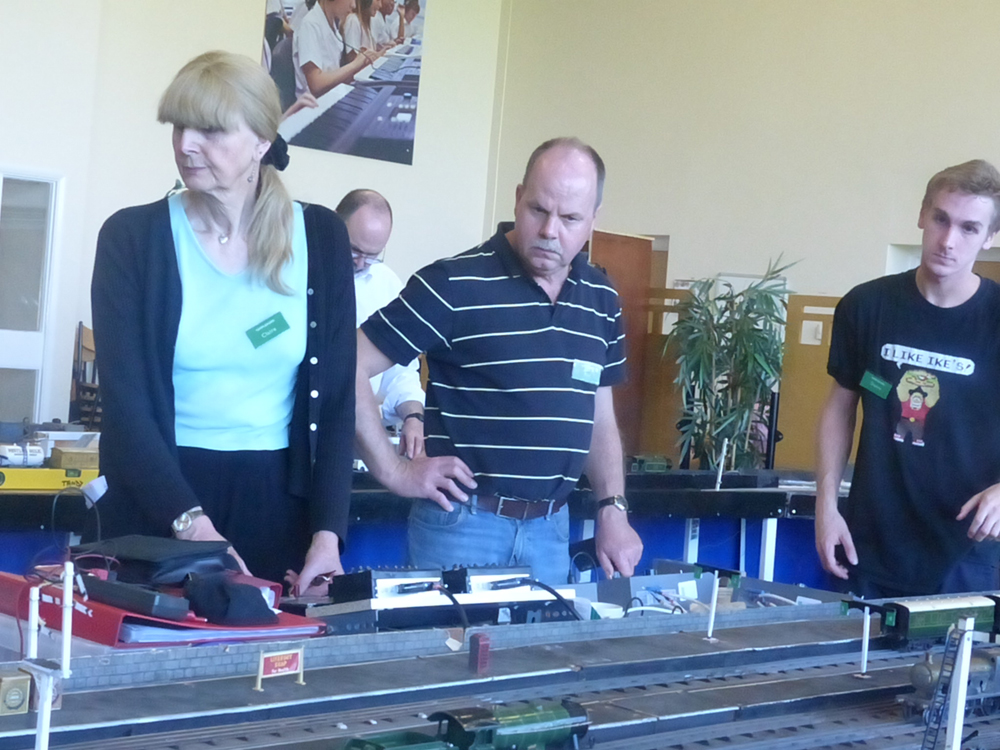 Again we had another successful show at the King Alfred's School, Burnham on Sea. Plenty of room, a level site, a nice café, car-parking nearby and warm sunny weather, what more could you ask for. I counted eleven layouts and seven traders. We were fortunate to be able to access the school-rooms the afternoon before the event. A lot of debugging was done, mainly electrical problems, as always.