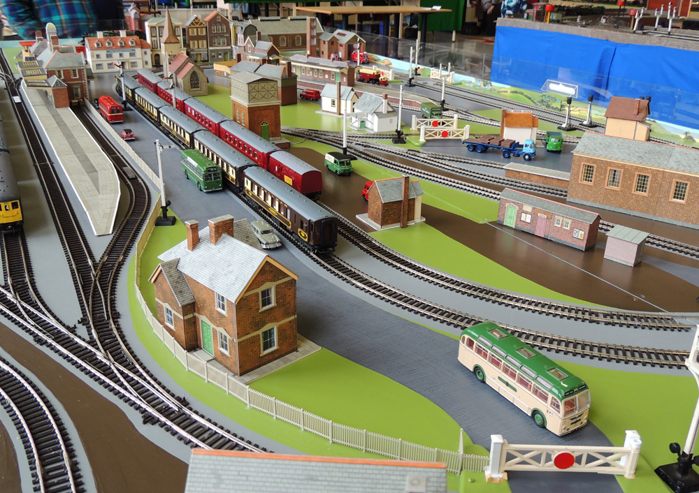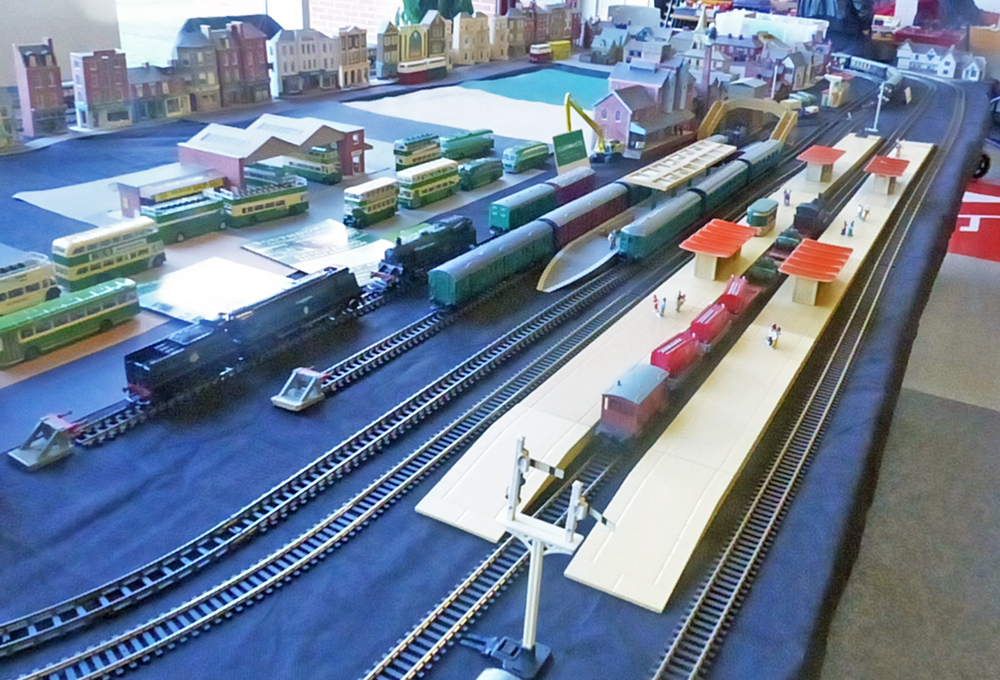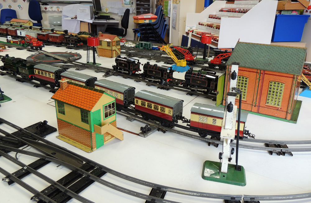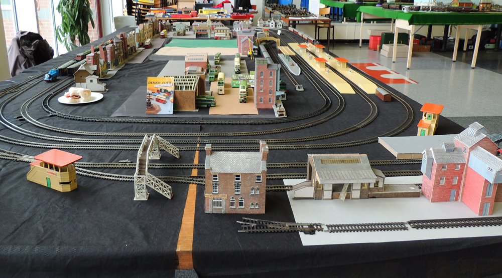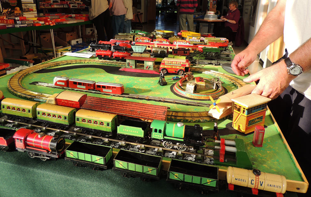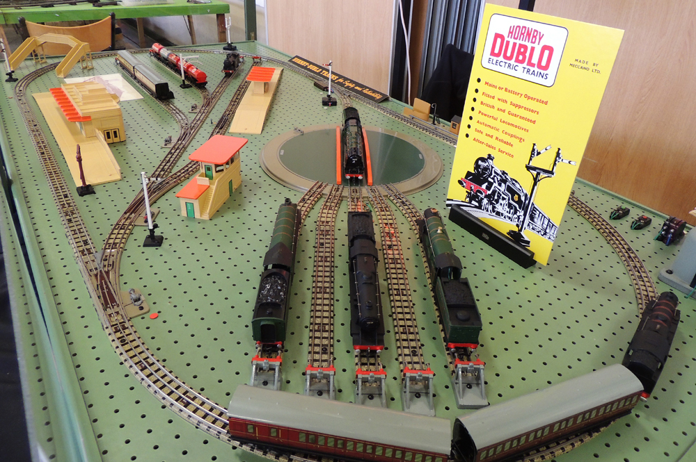 Vanessa Howells and Mike Rimes showed their impressive Dublo 2 rail layout featuring all things Wrenn. The control panel really sets high standards with automatic route setting. The sort thing that Network Rail has in its signal boxes. Steve Sands bought his module Dublo 3 rail layout. There was a most impressive fiddle yard with multiple loops, each loop could hold two trains. Barrie Taylor and colleagues had a Dublo 3 rail layout, nothing fancy, just like we used to set up on the dining room floor. Peter Carr had the other Dublo 2 rail layout, incorporating a Southdown bus garage, hence the Southern theme. The smallest layout was Tony Gray's Dublo shop layout. Don't you remember when you saw it, nose pressed against the shop window?
