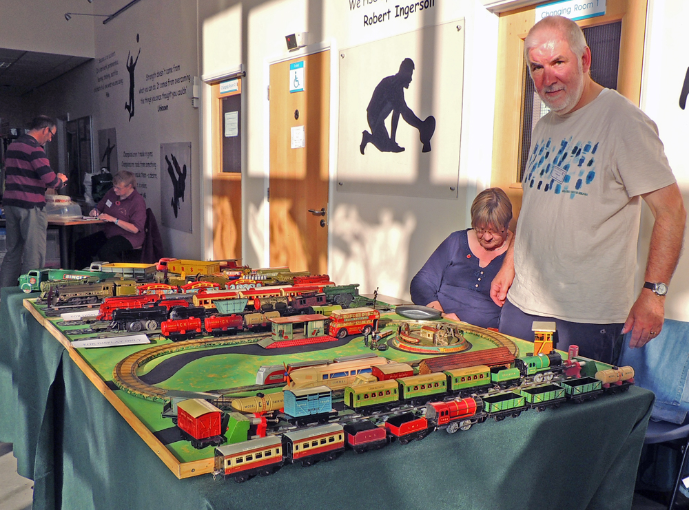 Roy Sinclair, the collector of the unusual, was demonstrating his mini Chad Valley collection plus some military Lionel stock. Neil Mansfield as well as a dealer was showing for the last time his diorama of Barry scrap-yard. This has been sold and is off to a railway preservation society.