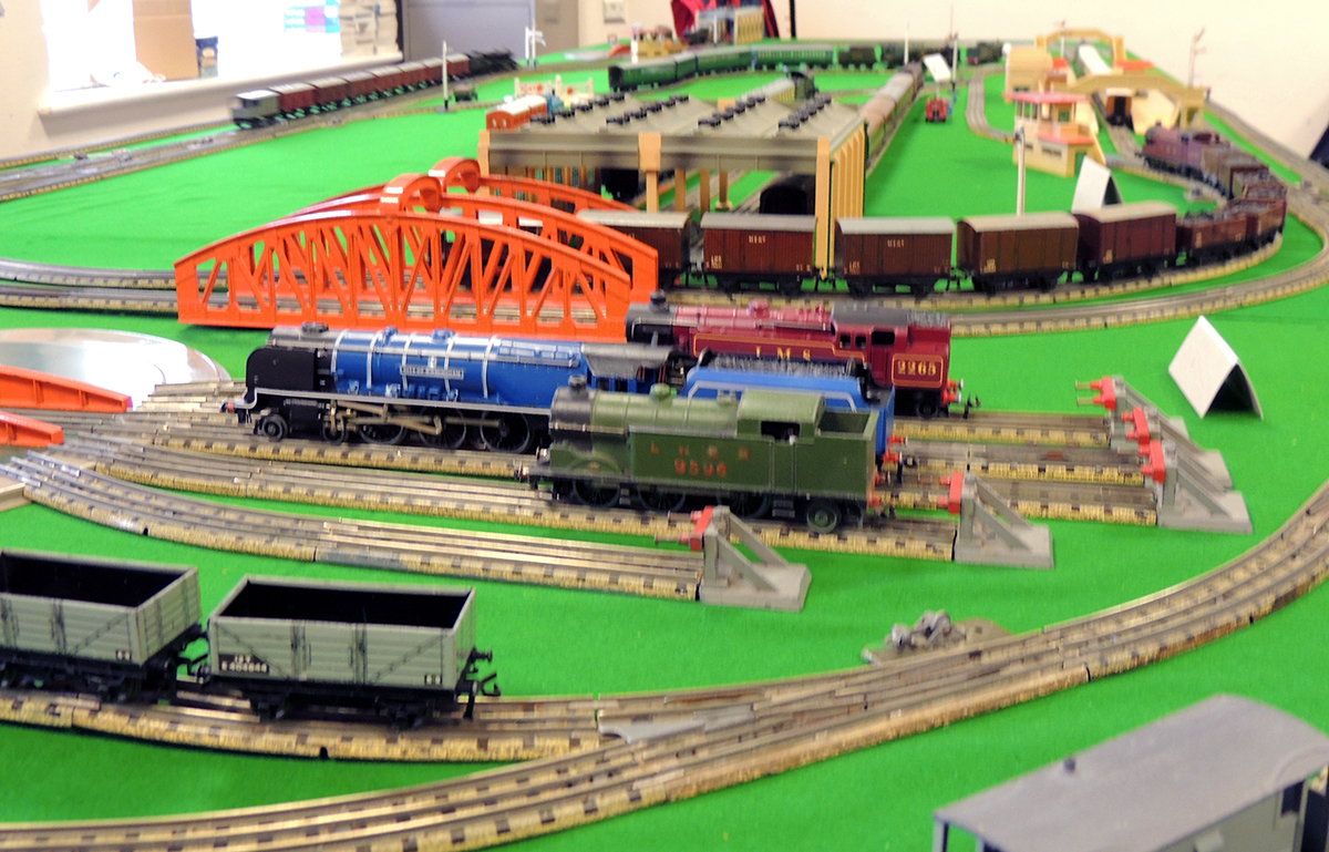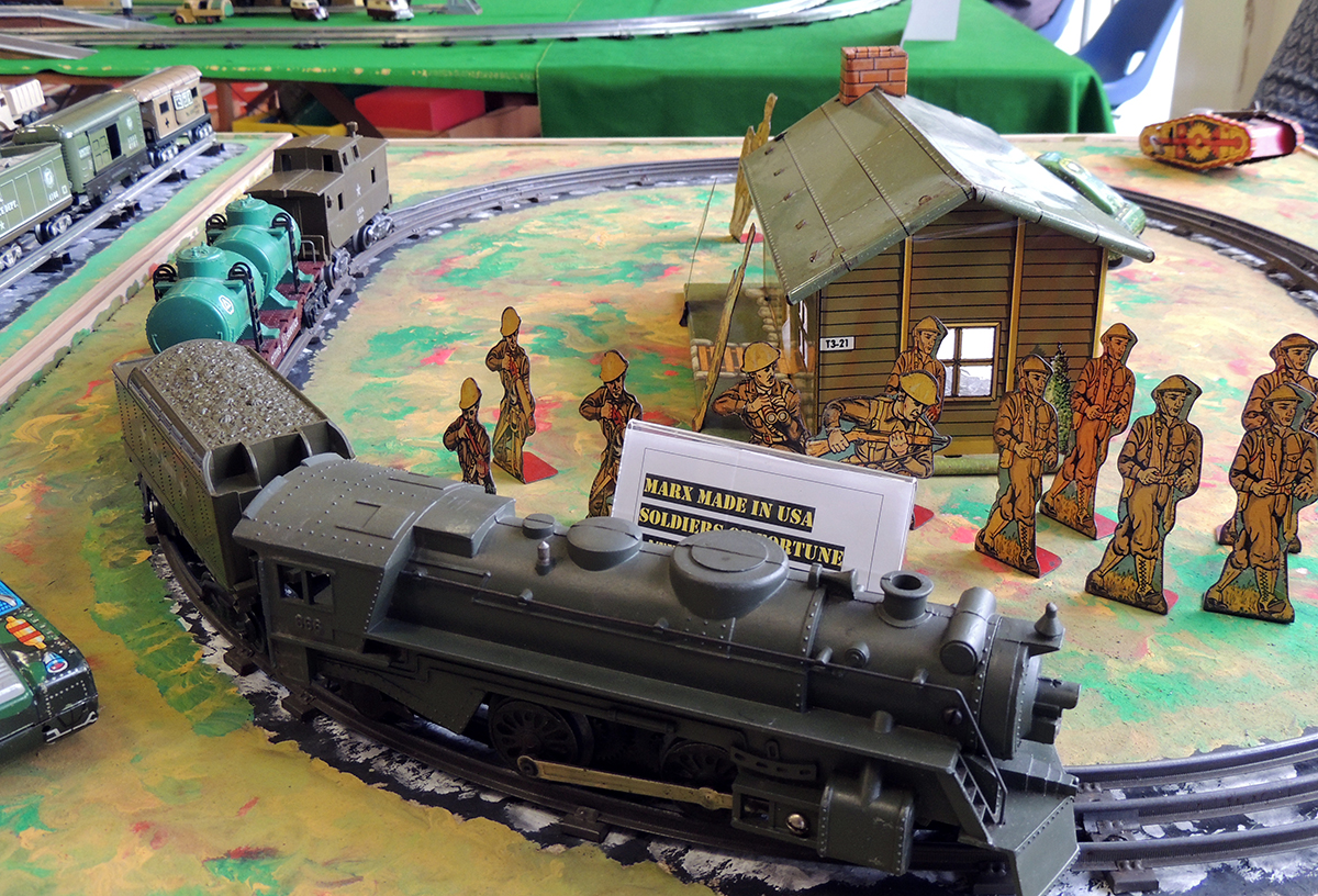 We must not forget the minor layouts. Roy Sinclair, with his Marx military trains in battleship grey;