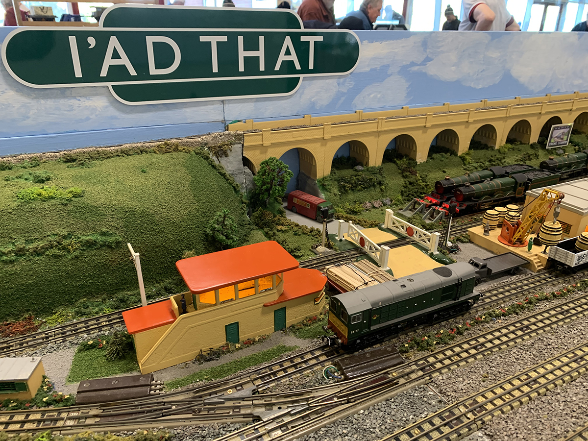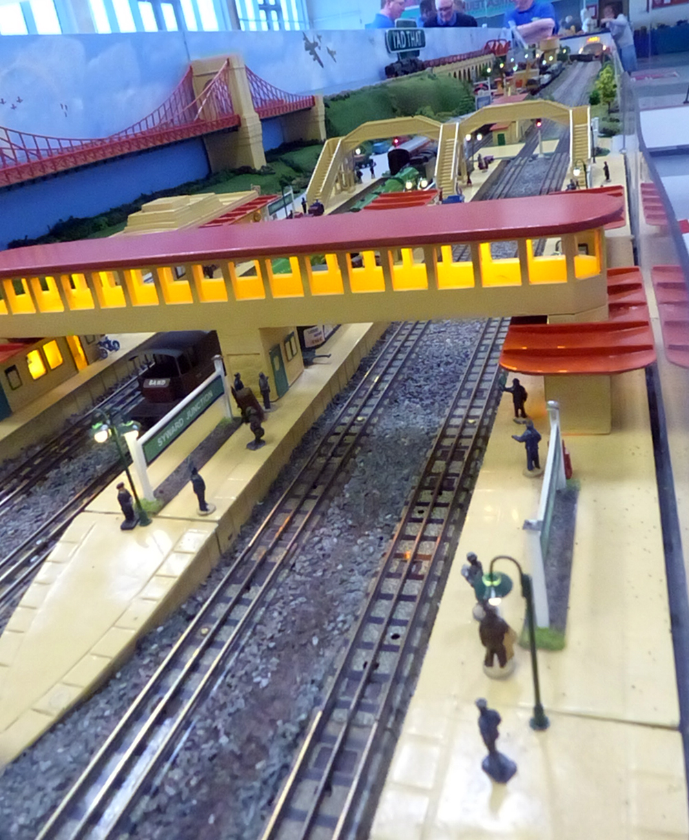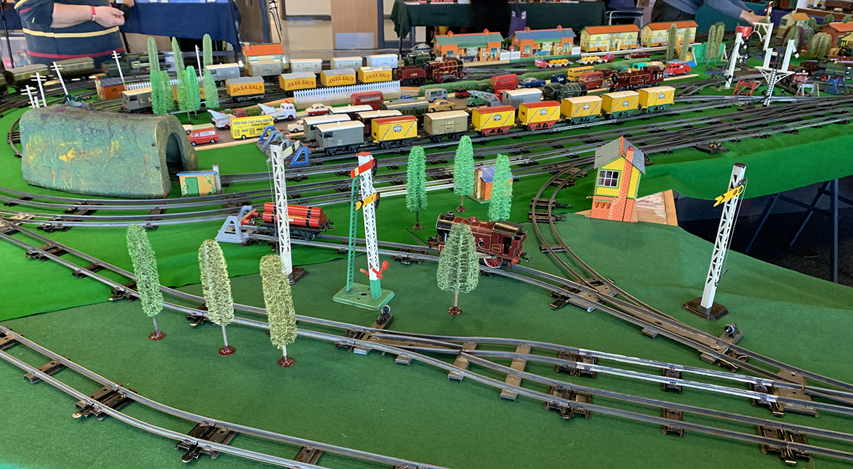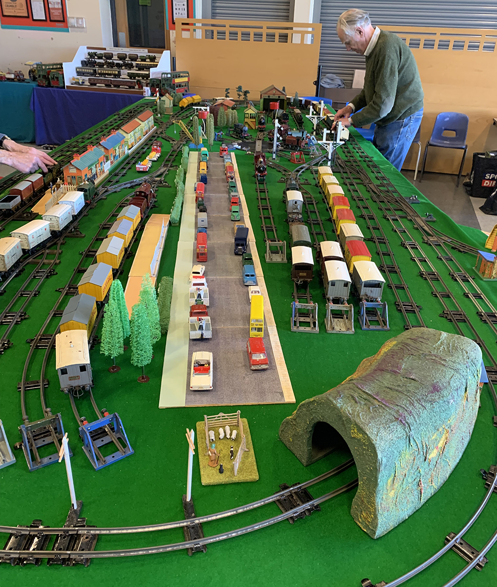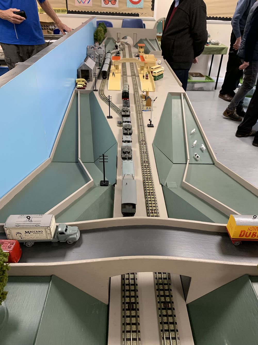 Two other guest displays must be mentioned. Martin Kilford is a regular at our shows and this year did not disappoint with his two rail layout decked out with French Hornby (Acho) buildings and rolling stock. Roger Winterbourne also made a return visit with his Triang display, showing how in the early 50's they improved their offerings to avoid banana shaped roofs etc. Being based in Margate, they introduced a Southern suburban passenger train early in their programme.