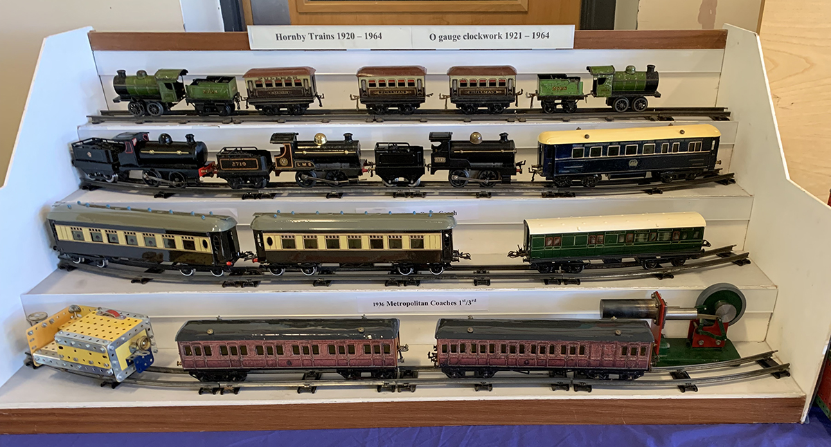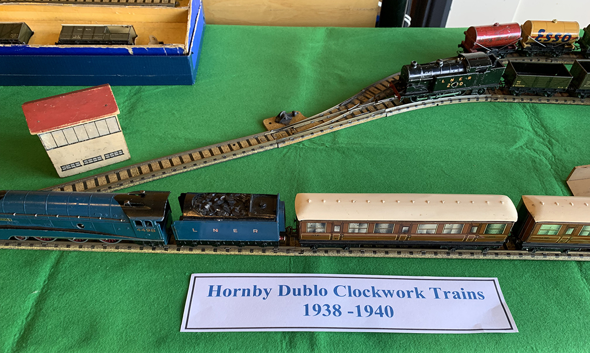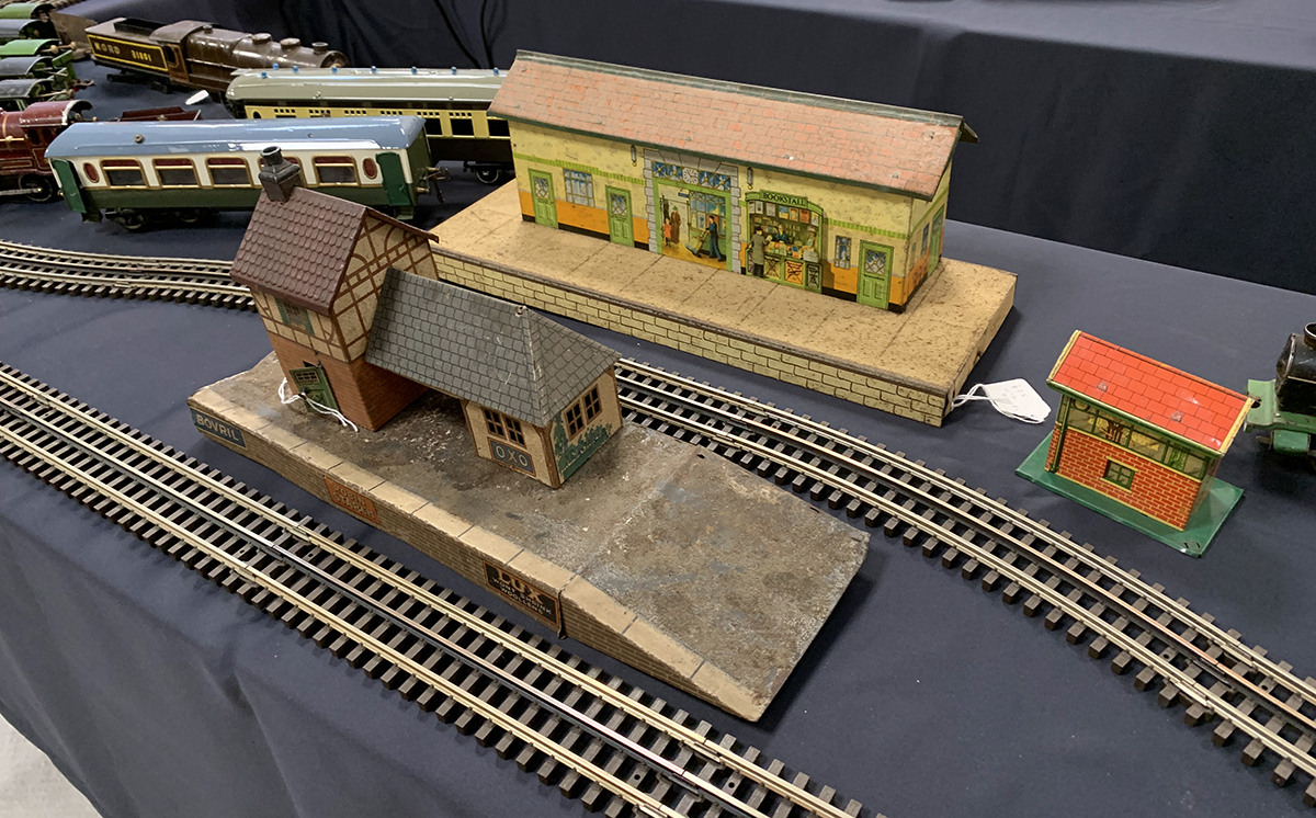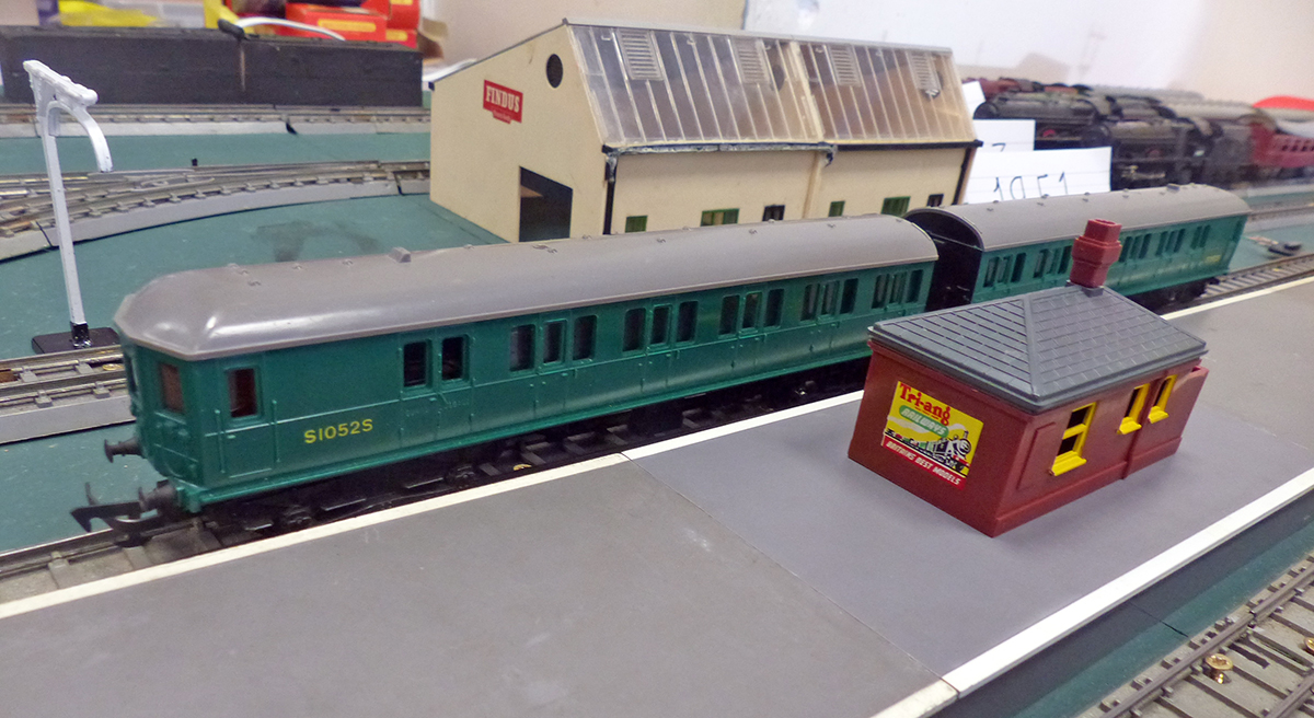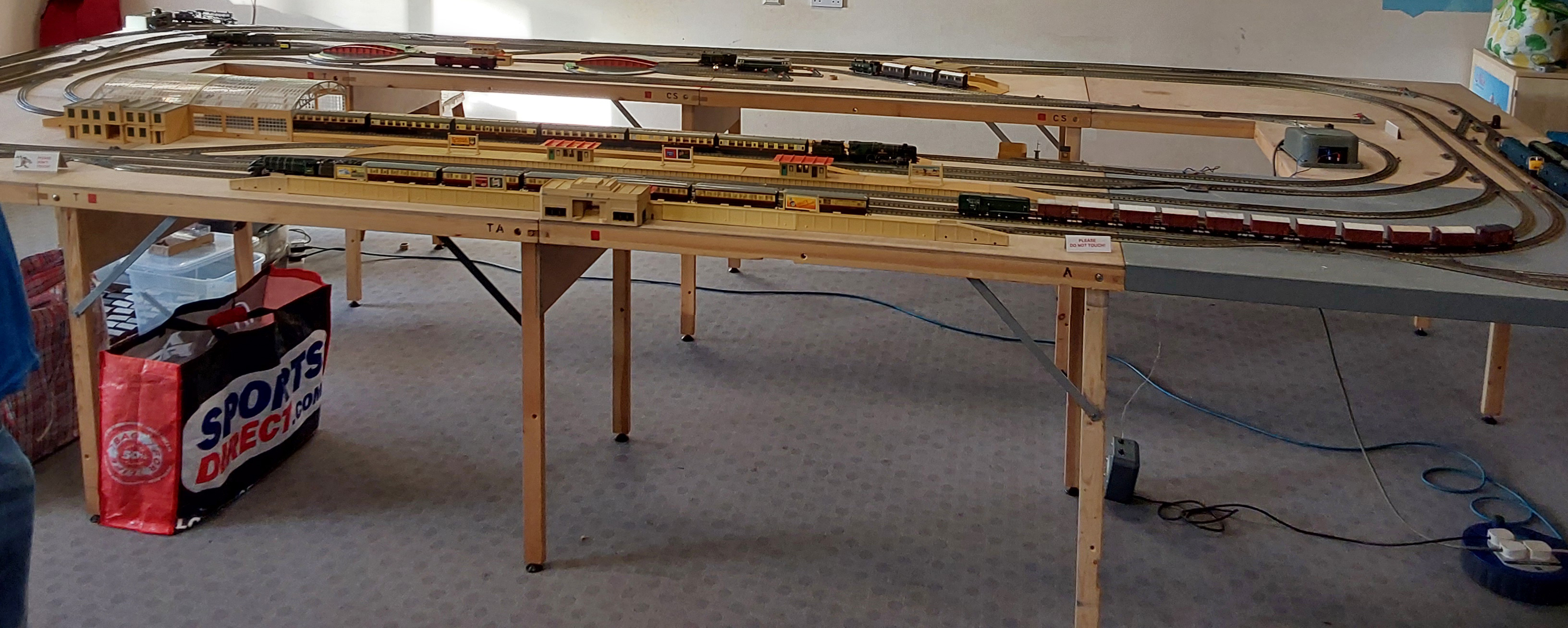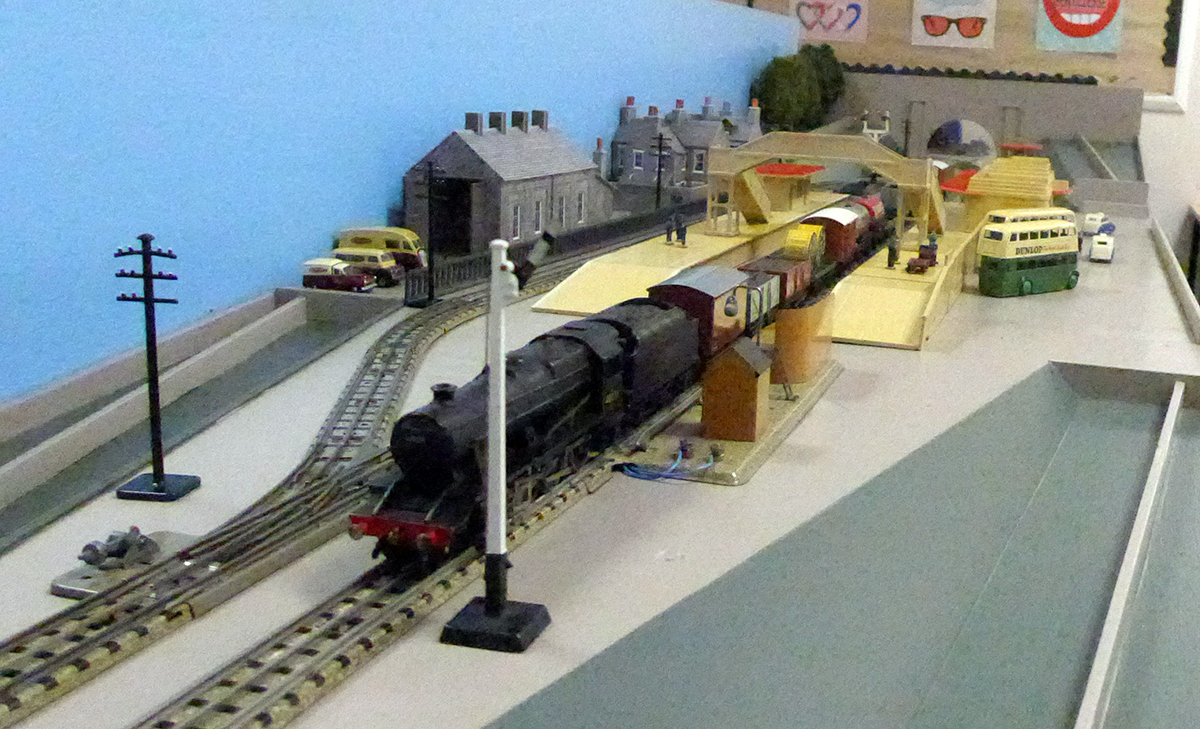 Two other guest displays must be mentioned. Martin Kilford is a regular at our shows and this year did not disappoint with his two rail layout decked out with French Hornby (Acho) buildings and rolling stock. Roger Winterbourne also made a return visit with his Triang display, showing how in the early 50's they improved their offerings to avoid banana shaped roofs etc. Being based in Margate, they introduced a Southern suburban passenger train early in their programme.
