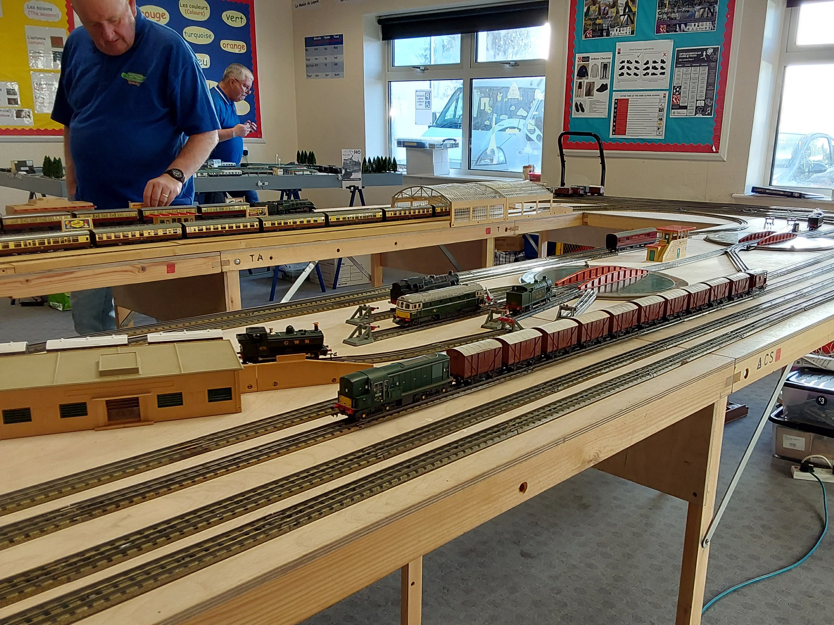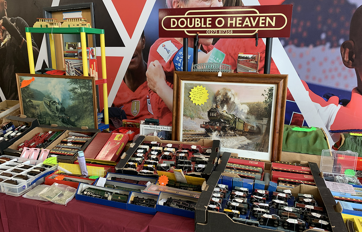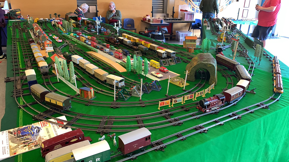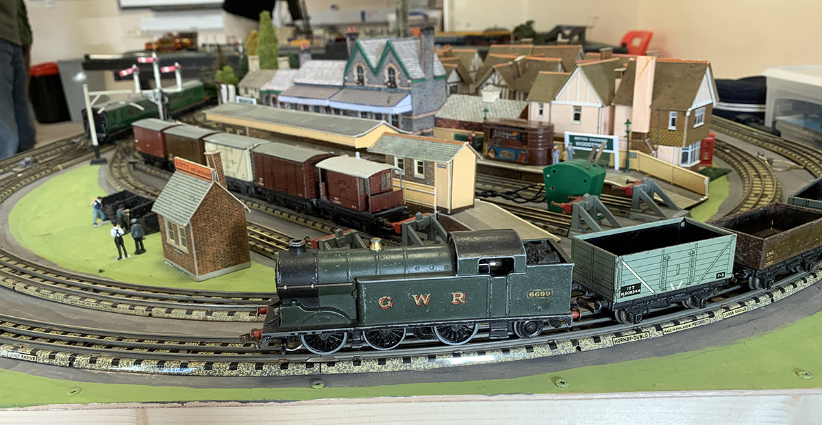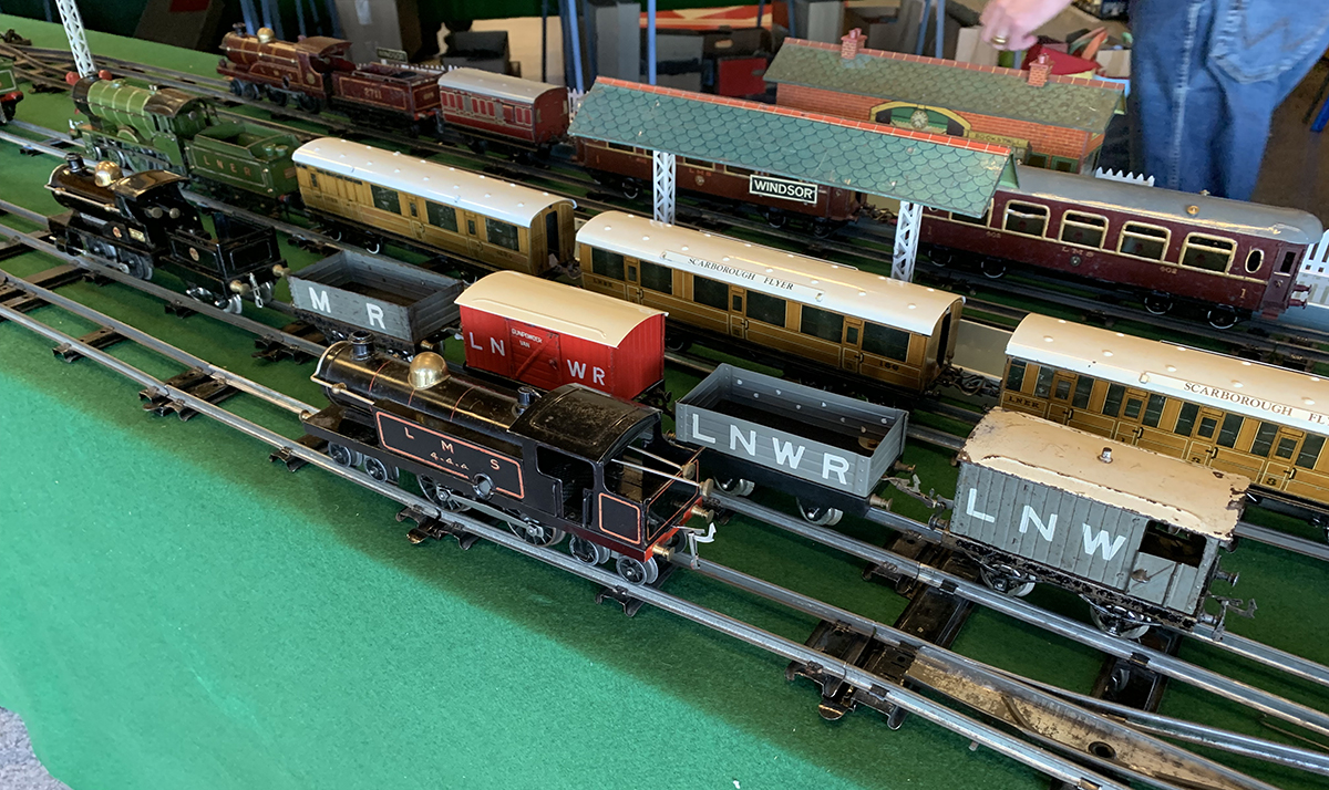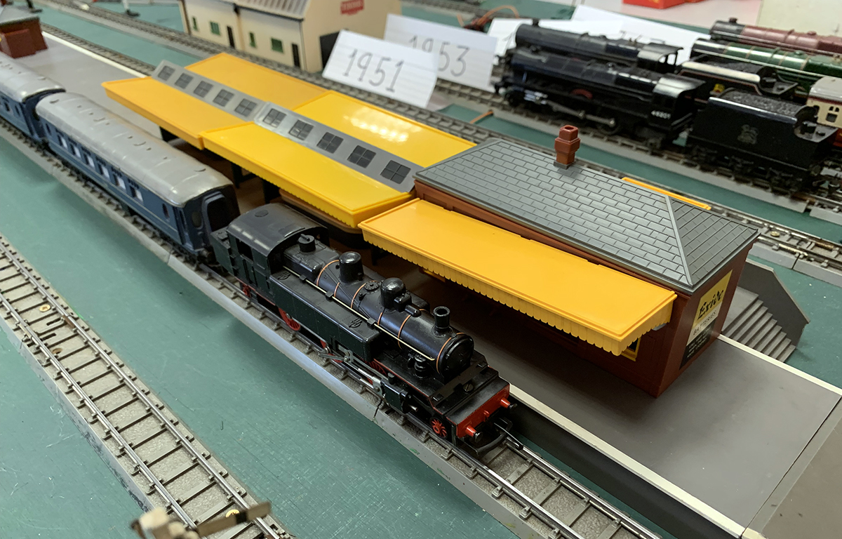 Two other guest displays must be mentioned. Martin Kilford is a regular at our shows and this year did not disappoint with his two rail layout decked out with French Hornby (Acho) buildings and rolling stock. Roger Winterbourne also made a return visit with his Triang display, showing how in the early 50's they improved their offerings to avoid banana shaped roofs etc. Being based in Margate, they introduced a Southern suburban passenger train early in their programme.