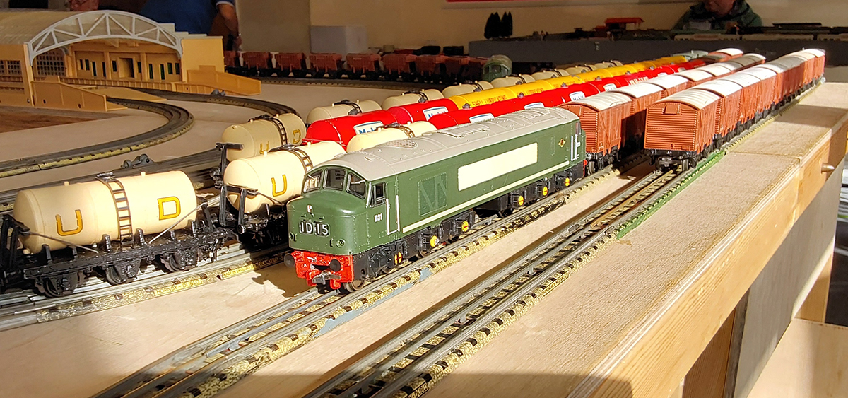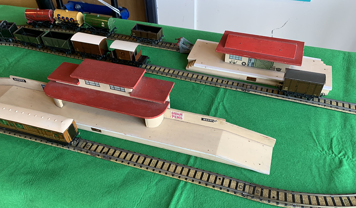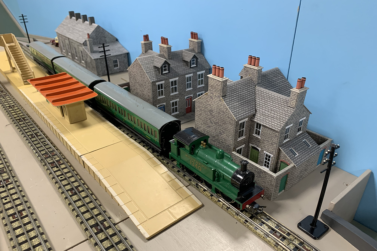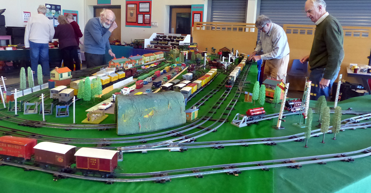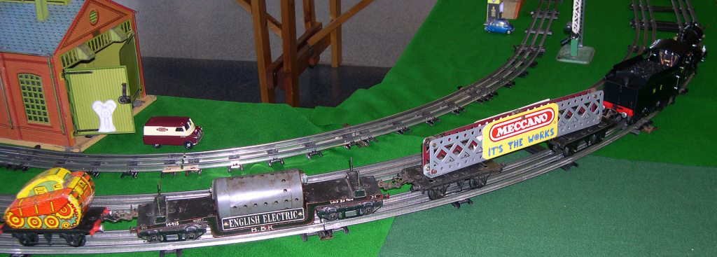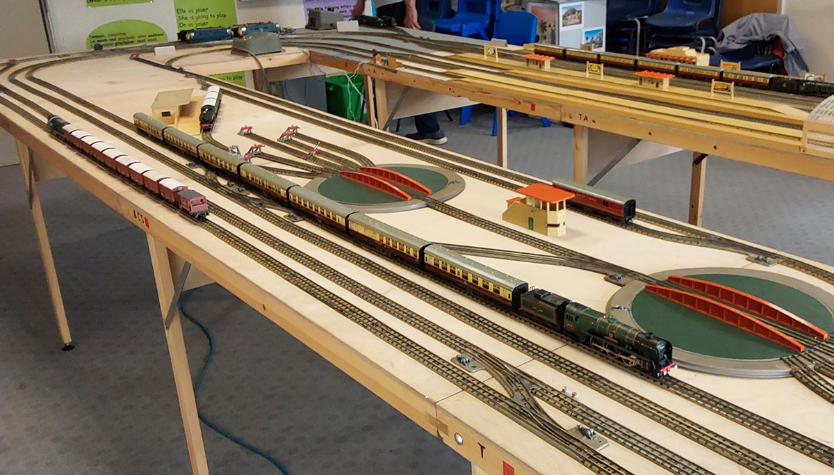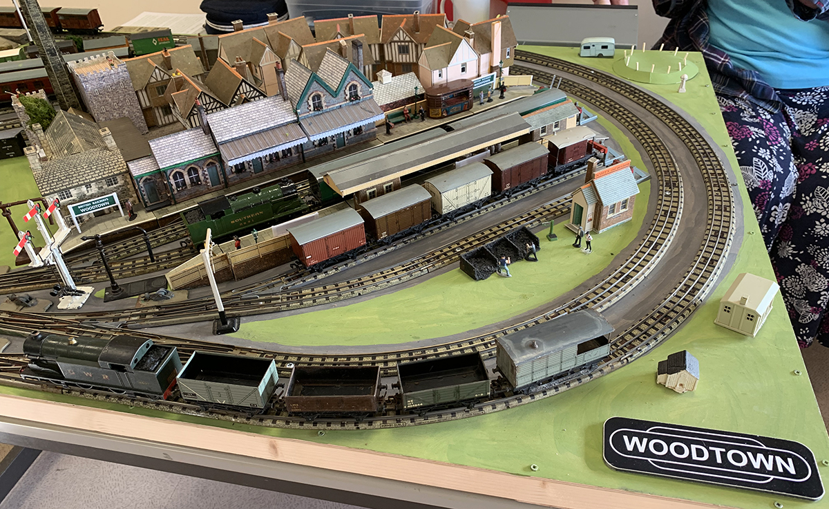 Two other guest displays must be mentioned. Martin Kilford is a regular at our shows and this year did not disappoint with his two rail layout decked out with French Hornby (Acho) buildings and rolling stock. Roger Winterbourne also made a return visit with his Triang display, showing how in the early 50's they improved their offerings to avoid banana shaped roofs etc. Being based in Margate, they introduced a Southern suburban passenger train early in their programme.