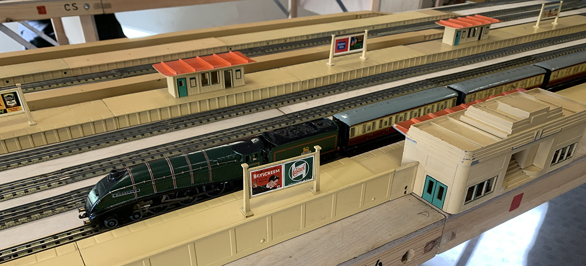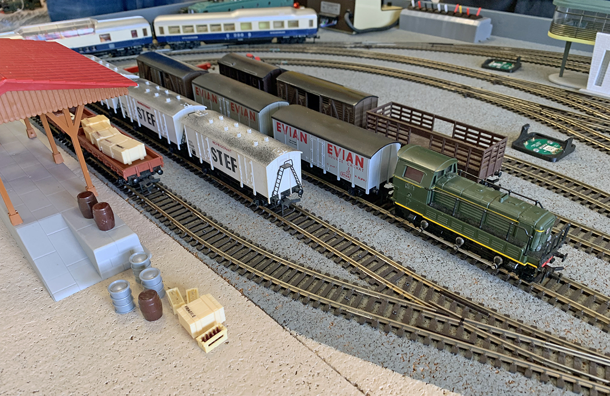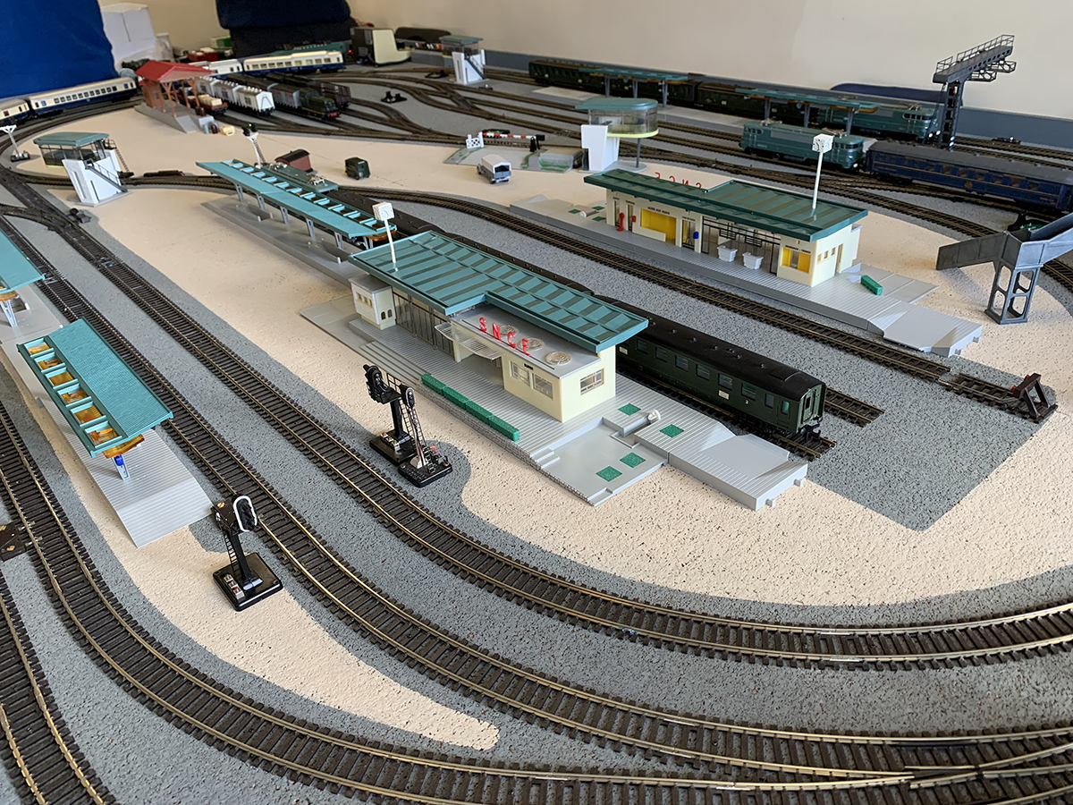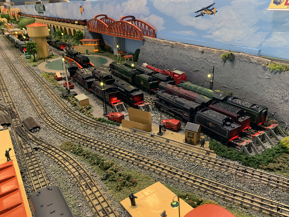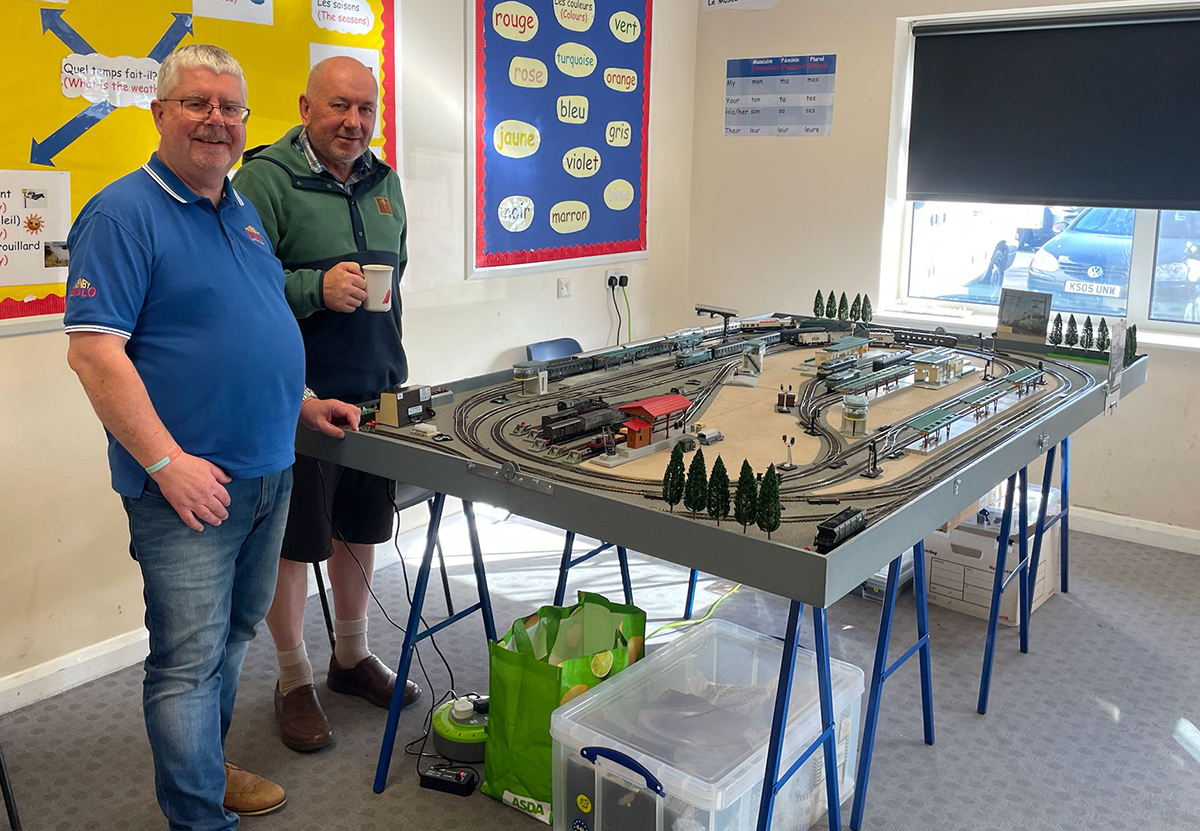 Two other guest displays must be mentioned. Martin Kilford is a regular at our shows and this year did not disappoint with his two rail layout decked out with French Hornby (Acho) buildings and rolling stock. Roger Winterbourne also made a return visit with his Triang display, showing how in the early 50's they improved their offerings to avoid banana shaped roofs etc. Being based in Margate, they introduced a Southern suburban passenger train early in their programme.