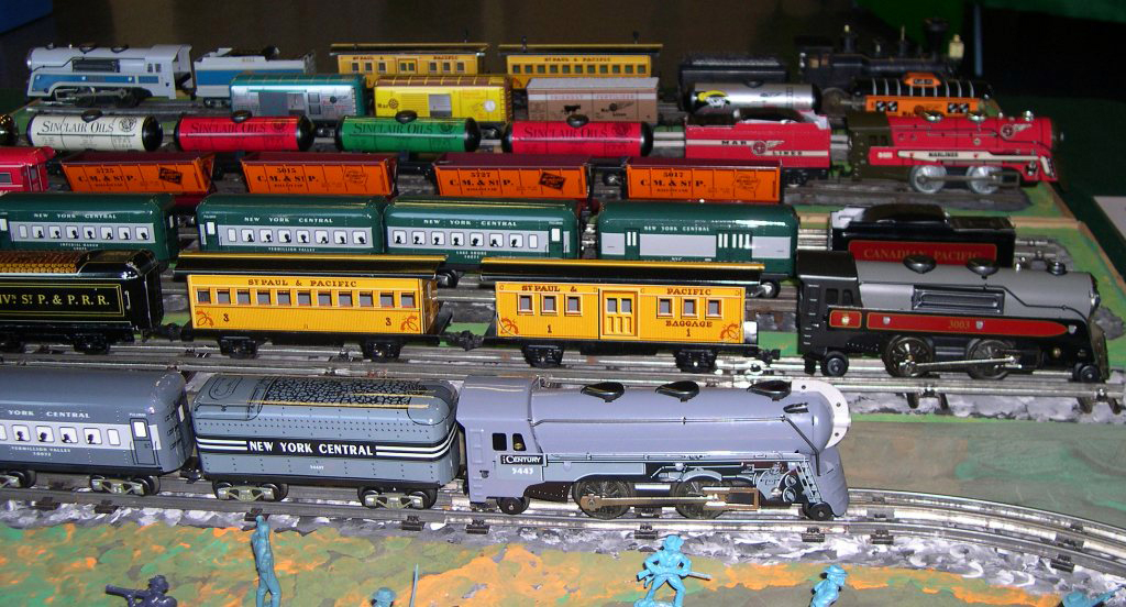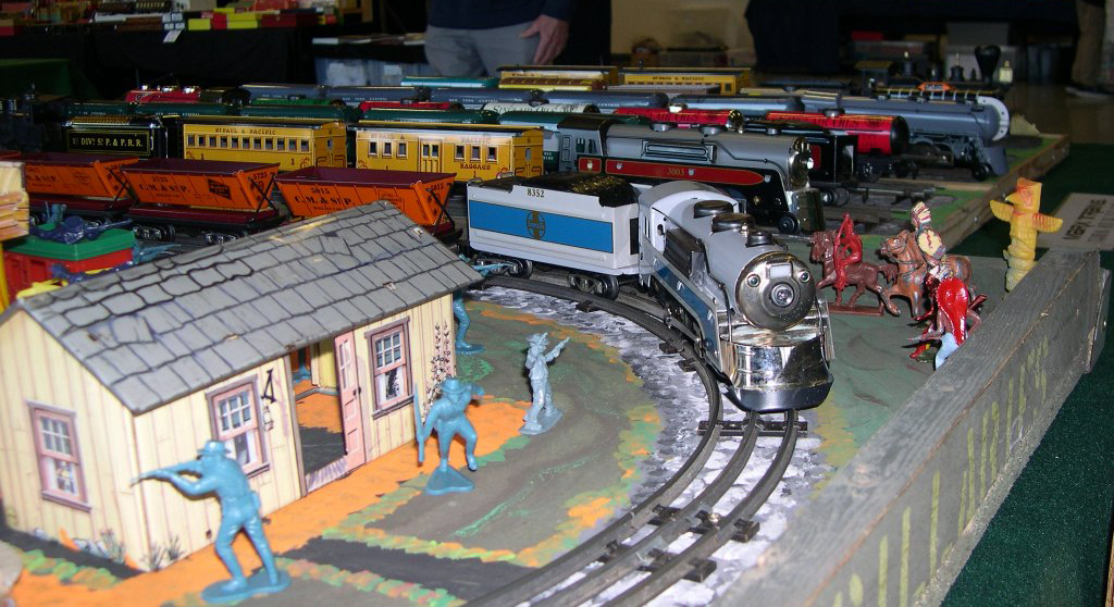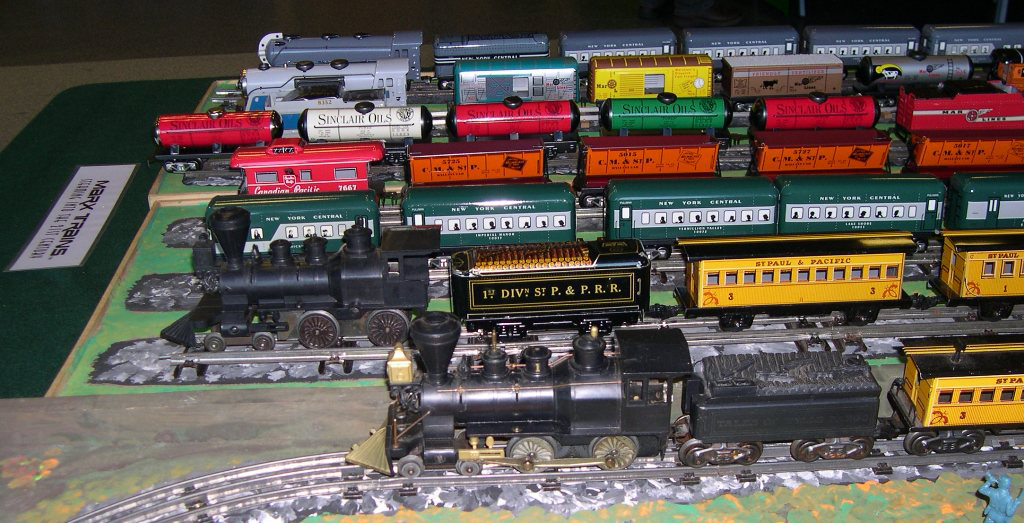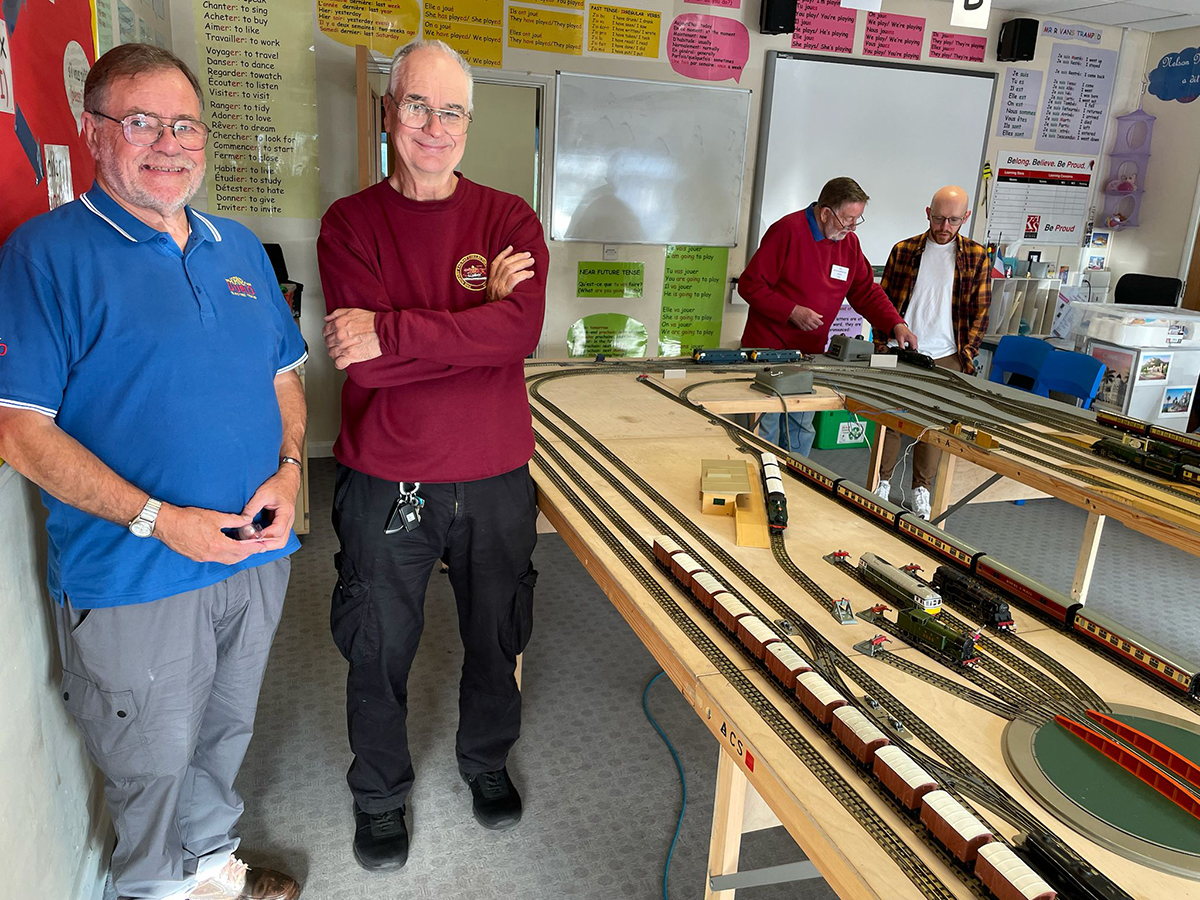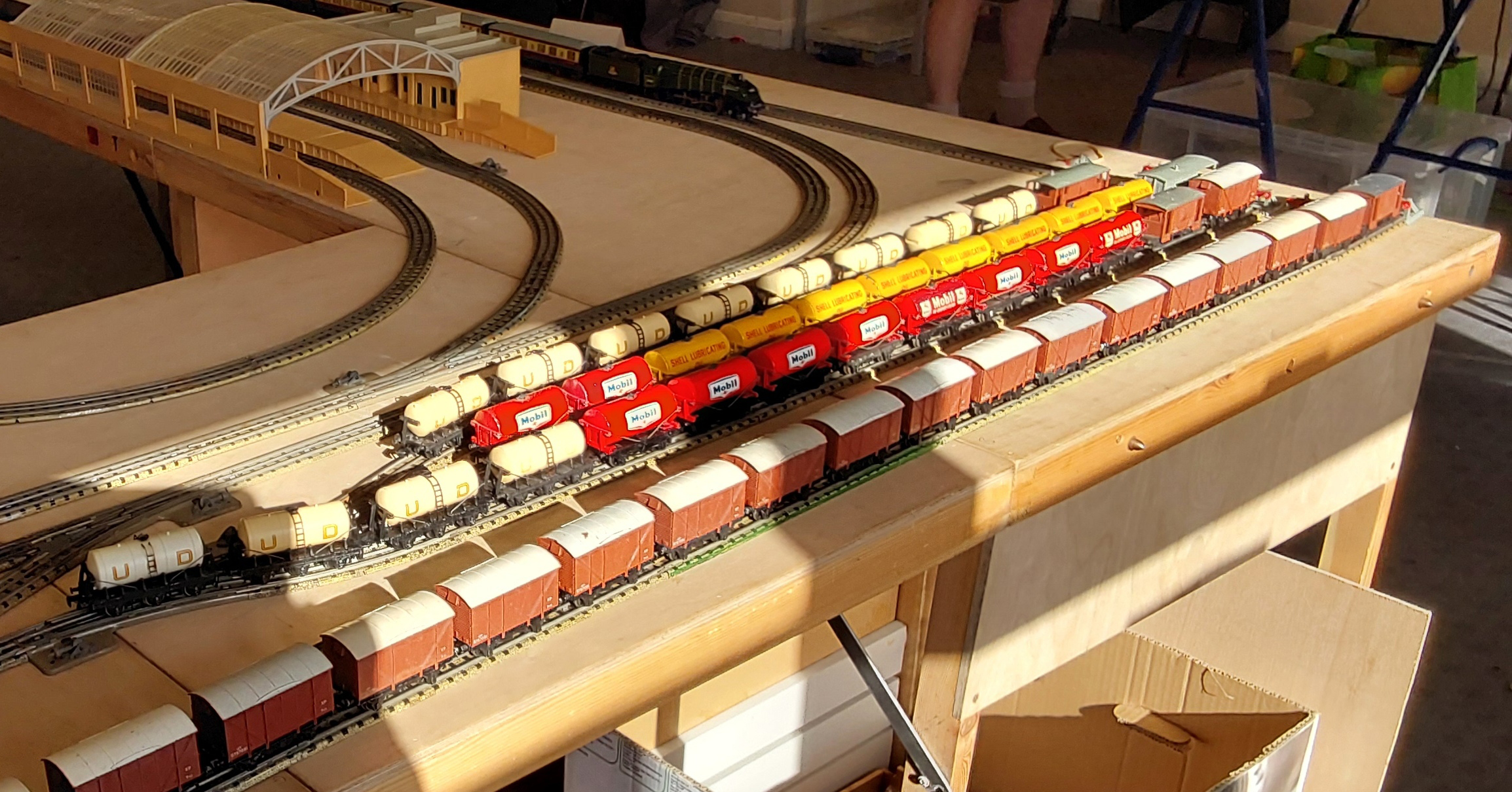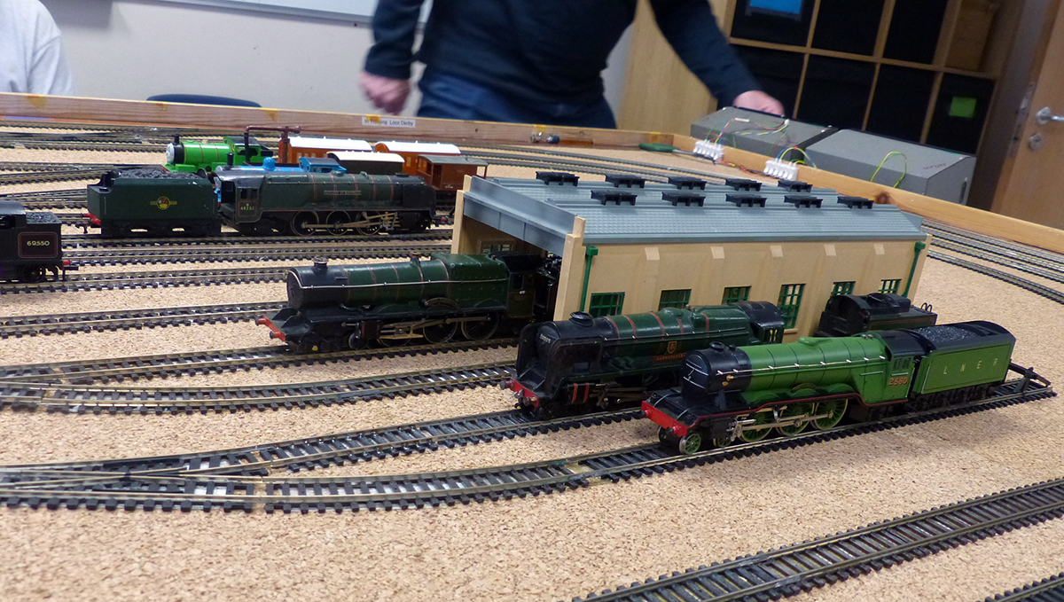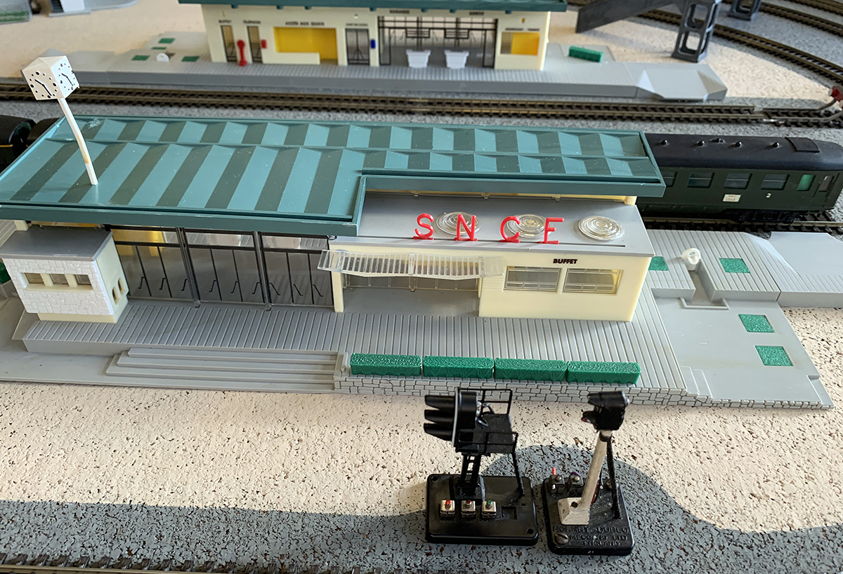 Two other guest displays must be mentioned. Martin Kilford is a regular at our shows and this year did not disappoint with his two rail layout decked out with French Hornby (Acho) buildings and rolling stock. Roger Winterbourne also made a return visit with his Triang display, showing how in the early 50's they improved their offerings to avoid banana shaped roofs etc. Being based in Margate, they introduced a Southern suburban passenger train early in their programme.